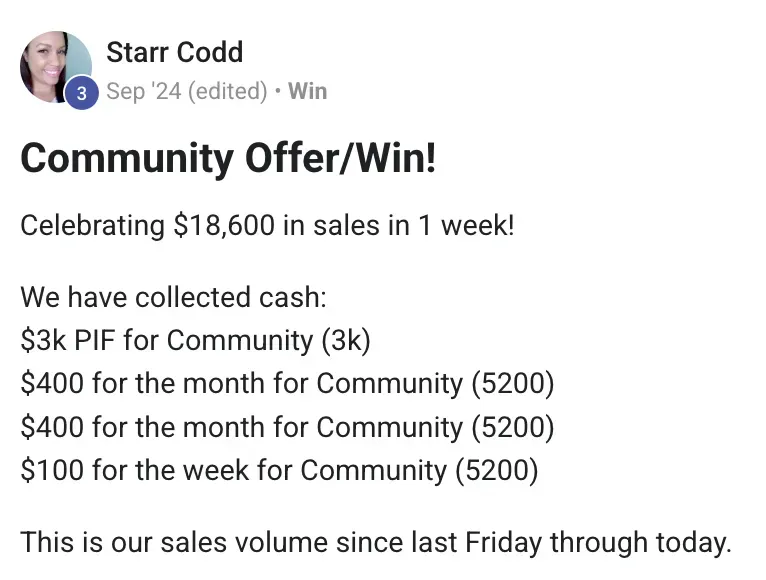 Verified Customer - Starr Codd, Celebrates $18,600 in Sales